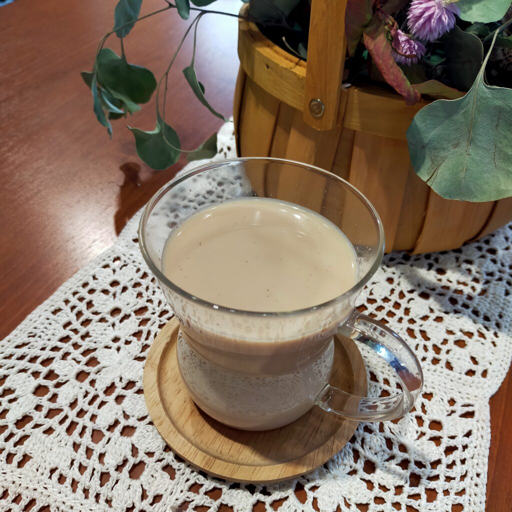 独自の基準で放牧した安全な牛から搾った牛乳と、有機コーヒー豆を自家焙煎したコーヒーを使用した当店オリジナルのオーガニックカフェオレです。